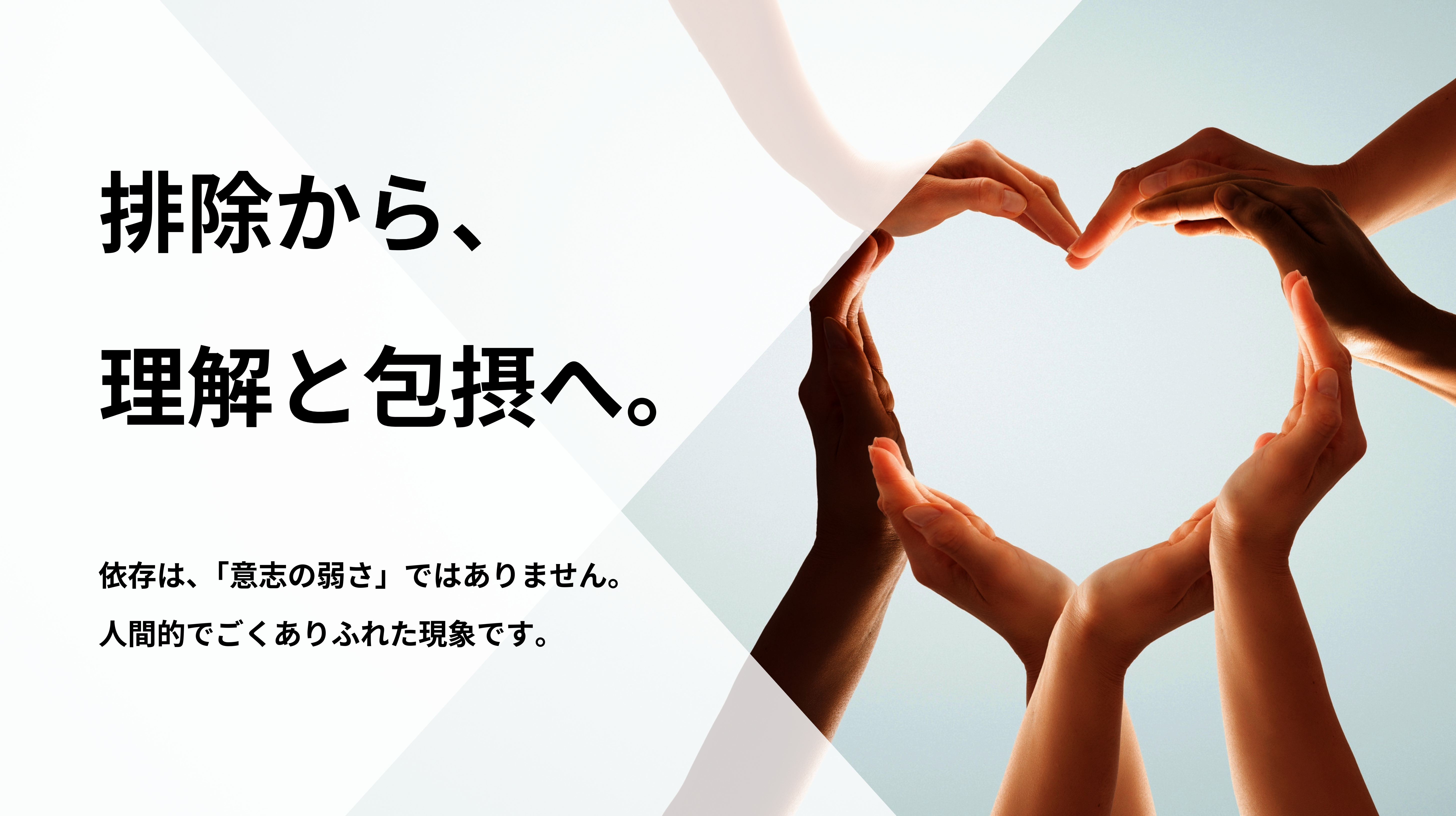 私たちが目指すのは、「依存症のない社会」ではありません。困っている人が罰せられず、排除されず、安心して助けを求められる社会です。